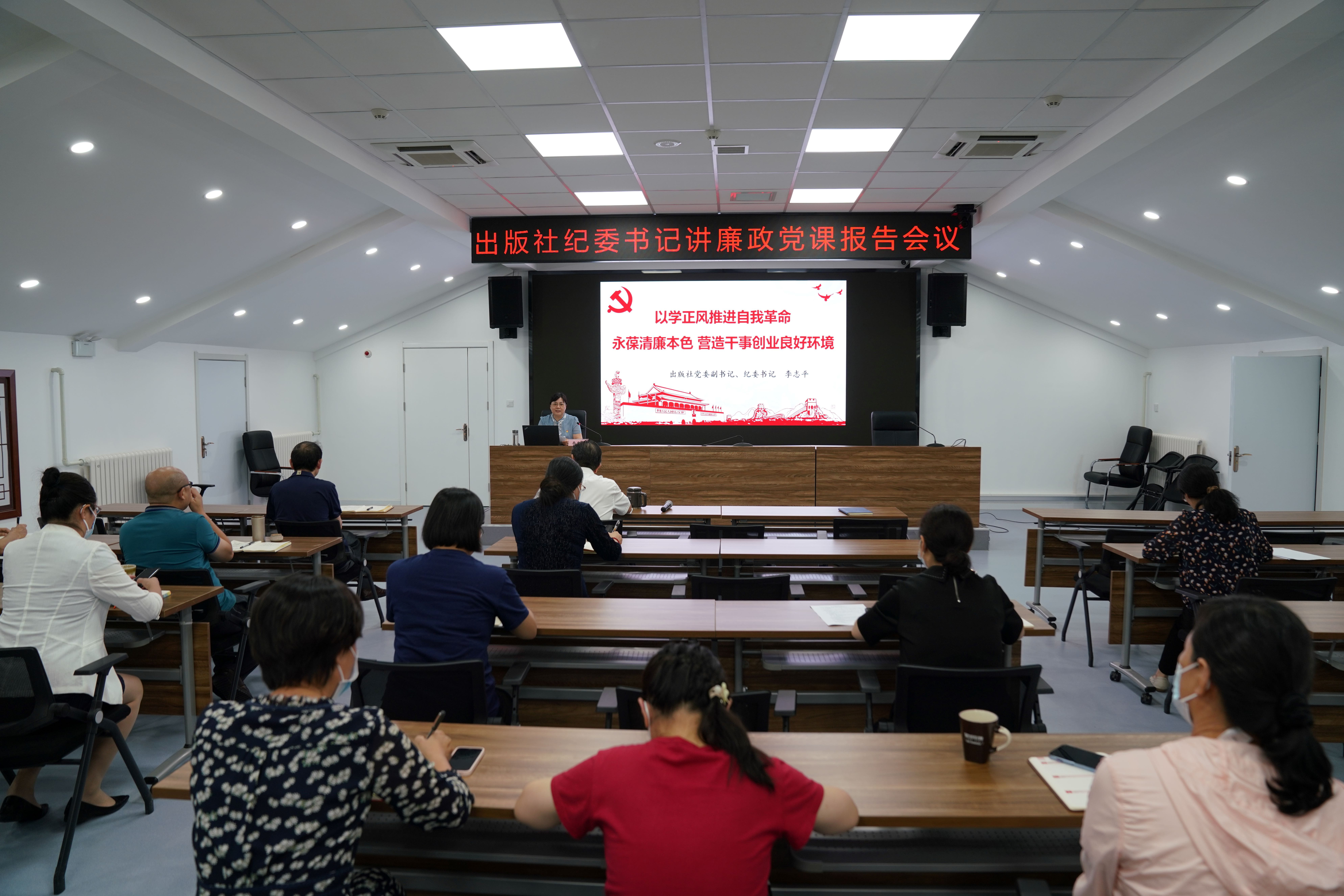 紀(jì)委書記李志平以《以學(xué)正風(fēng)推進(jìn)自我革命 永葆清廉本色 營造干事創(chuàng)業(yè)良好環(huán)境》為題講廉政黨課報(bào)告,報(bào)告從充分認(rèn)識(shí)開展主題教育和干部教育整頓的重大意義、學(xué)習(xí)習(xí)近平總書記關(guān)于黨的自我革命、嚴(yán)明黨的紀(jì)律規(guī)矩和加強(qiáng)作風(fēng)建設(shè)的重要論述、重要黨規(guī)黨紀(jì)的宣貫、典型案例剖析及警示、通報(bào)出版社存在的苗頭性傾向性問題、提出加強(qiáng)紀(jì)律作風(fēng)建設(shè)的重要舉措等6個(gè)方面進(jìn)行了深入闡述。