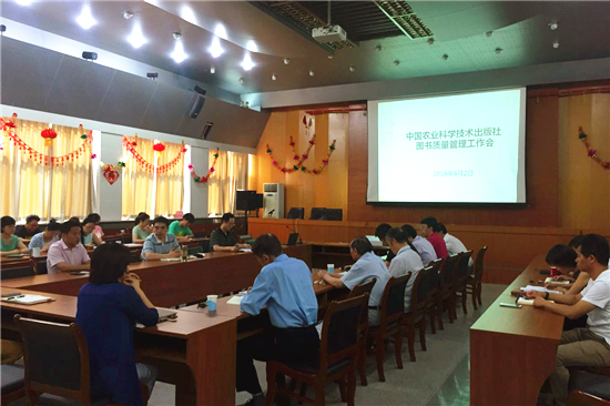 6月2日,中國農(nóng)業(yè)科學(xué)技術(shù)出版社召開了以“打造精品力作,提升文化產(chǎn)品正能量”為主題的圖書質(zhì)量管理工作會(huì),針對(duì)進(jìn)一步加強(qiáng)圖書質(zhì)量管理進(jìn)行了交流和研討。社領(lǐng)導(dǎo)、相關(guān)職能部門人員、全體編校人員、終審和印前審讀專家等參加了會(huì)議。會(huì)議由社長駱建忠主持。